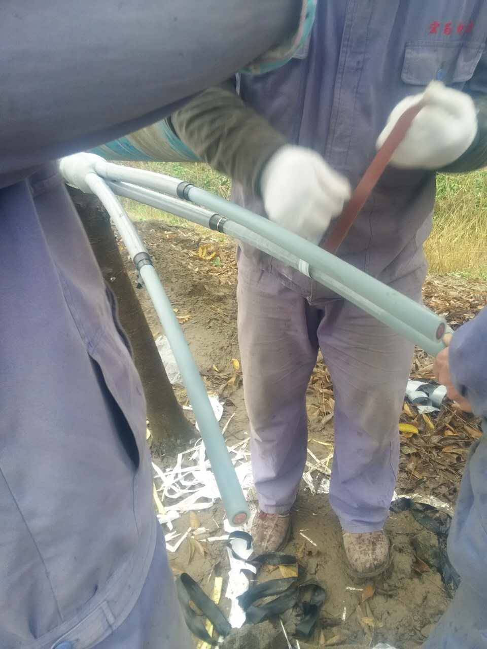 由于天氣正值下雨,工作負(fù)責(zé)人首先派一部分班組成員,對(duì)搭接電纜頭進(jìn)行了制作。然后等雨稍微小點(diǎn)的時(shí)候,派其余一部分班組成員上桿進(jìn)行安裝施工。在安裝施工期間,由于下雨,繩子容易打滑,工作負(fù)責(zé)人及時(shí)做好安全措施,避免打滑造成不必要的損失及安全事故。