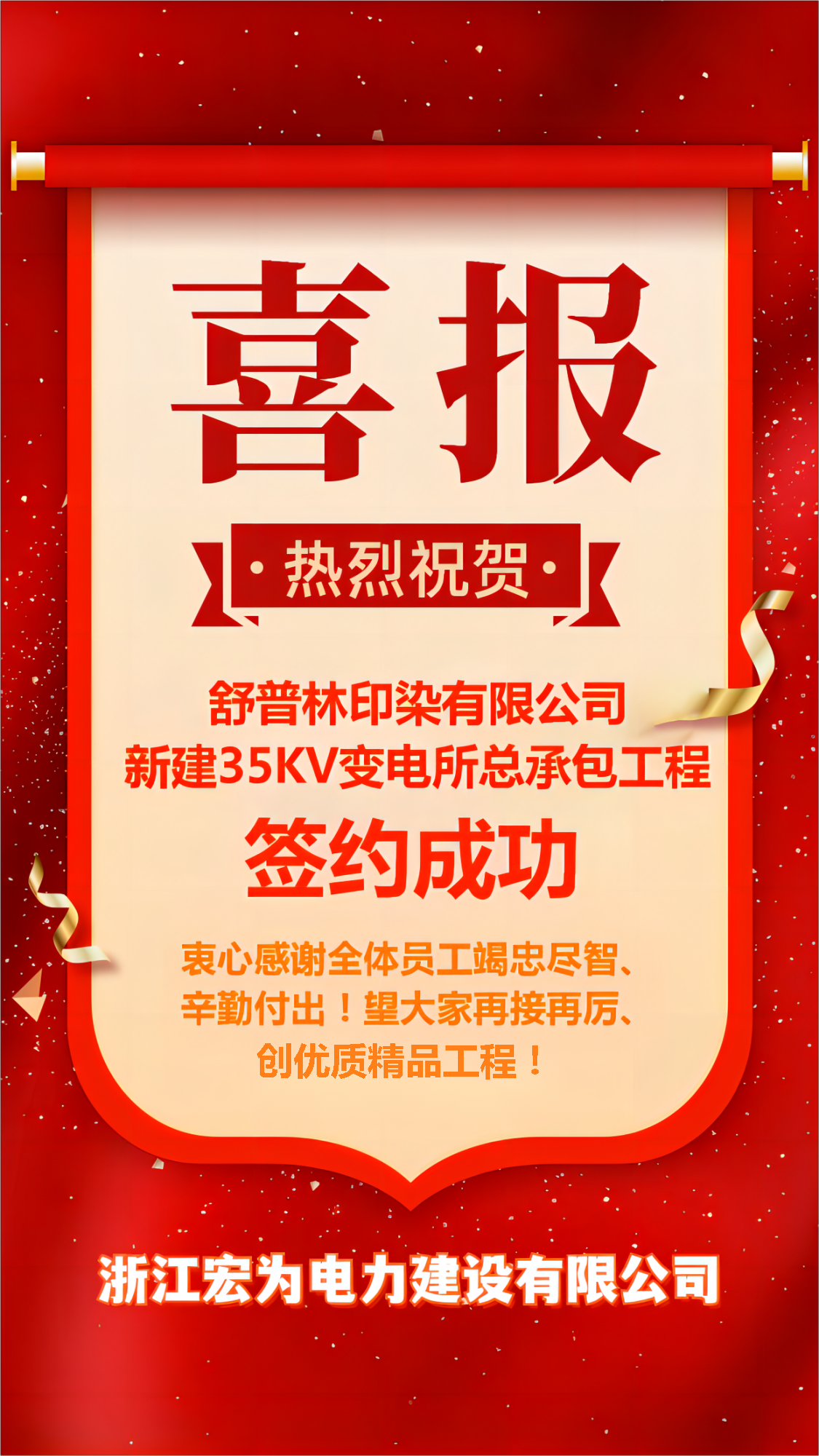 熱烈祝賀浙江越甲印染有限公司35kV運(yùn)維總承包工程簽約成功!
